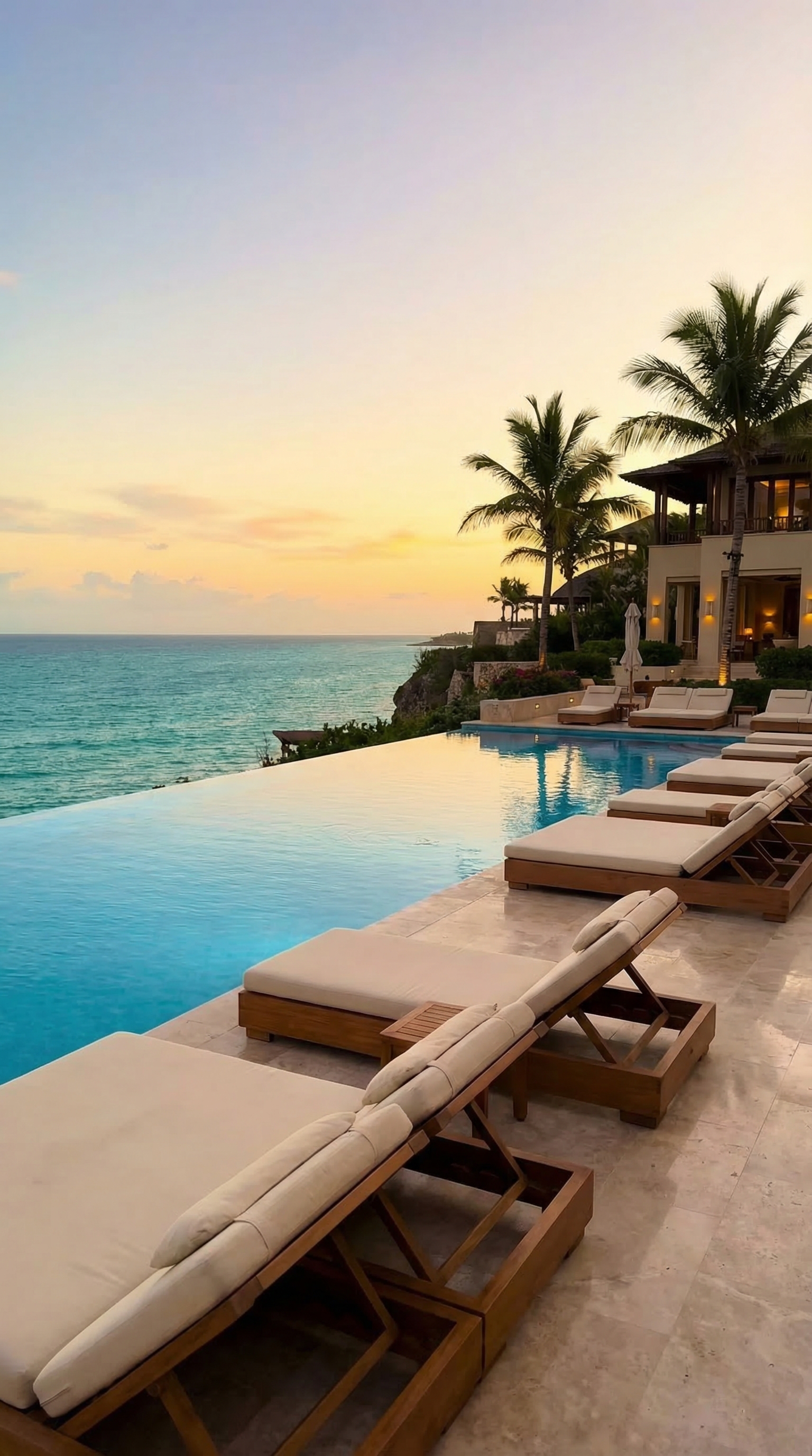 Coastal Escape luxury travel slideshow: 8 images, 25s, music from 19s, big bold white title.